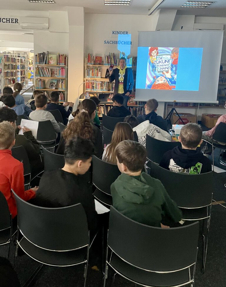 Zum Welttag des Buches waren die Klassen 4a, 4b, Klasse 4 der KBS und die VKL-Klasse am Dienstag, den 09. Mai 2023 in der Buchhandlung Rupprecht in Crailsheim.